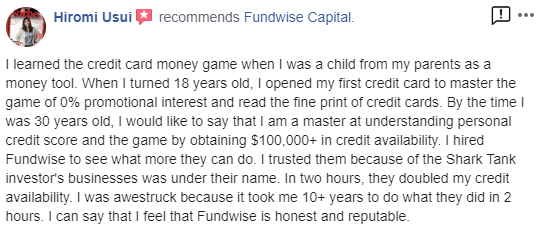 BUSINESS OPPORTUNITY: FUNDWISE CAPITAL, and associated free training are NOT considered an income or business opportunity according to the Business Opportunity Rule § 437.1m; “that advertising and general advice about business development and training shall not be considered as ‘providing locations, outlets, accounts, or customers.’”. In good faith, FUNDWISE CAPITAL LLC. is providing a the One-Page Disclosure Document for purposes of consumer transparency.